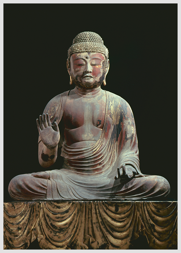 丈六(一丈六尺、約4.85メートル。仏像にもっとも適当とされる大きさ)の釈迦如来像と、両脇侍の二菩薩像を造り、北山階(京都市山科区)の邸宅に堂を建てて安置しました。これは、天智天皇が粟津(滋賀県大津市)の都におられたころのことです。